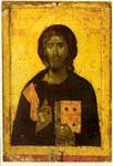 On the main face of this double-sided icon Christ is depicted as the Pantokrator. He is portrayed from the waist up wearing a cherry-red tunic with a clavus and a deep blue himation. His right hand is raised before his chest in a gesture of blessing, and he holds a richly-bound closed Gospel in his left. The long face is framed by brown hair, which touches the left shoulder. The beard sprouts softly out of the chin and is rendered with sensitive linear brushstrokes. The inscription 'Jesus Christ Pantokrator' is written in the upper part of the icon on a yellow ground that imitates gold. This iconographical type of Christ Pantokrator is a common one in Byzantine art. However, the slender proportions and the long, narrow face bring this icon very close to the Pantokrator in the Hermitage in St Petersburg, which is also from Pantokrator Monastery and dated to about 1363 (Vocotopoulos 1995, no. 96). St Athanasios the Athonite, in bust, is wearing a hooded monk's habit and holding a half-opened blank scroll. The prominent cheekbones, sunken cheeks, relatively small, narrow eyes, and long light brown beard give the saint's ascetic face an intense expression. The ground of the icon is yellow, as on the other side, and the inscription, 'St Athanasios the Athonite', is written on either side of the saint's head. Athanasios's face is rendered with limited areas of dull green underpainting, to which is added the brown colour of the flesh, the prominent areas of the brow and cheeks being emphasised with white, linear highlights. The technique employed for the faces of both figures is typical of Byzantine art from the mid-fourteenth century and after (Xyngopoulos 1956, pp. 16ff. Soteriou 1959, pp. 81ff.). Dense fine hatching accentuates the illuminated areas of the face, giving the luminous flesh a translucent quality, an impression which is strengthened by the shading, which, with no linear outline, defines and softly blends into the face in a painterly manner. In monumental painting, this technique is seen in the frescoes in the Church of the Peribleptos at Mistra (Xyngopoulos 1956, pp. 29-32), the frescoes at Ravanica in Serbia (1385-7), and the frescoes by Manuel Eugenikos at Calendzicha (1384-97) in Georgia (Lazarev 1967, figs. 520-1, 524). The geographical spread of the technique, which served to produce fleshless, idealised figures animated by a religious lyricism and an exalted spirituality, cannot be unconnected with the mystic tendencies that prevailed in religious thought after the triumph of the Hesychast movement and spread throughout the Balkans into Russia in the second half of the fourteenth century. Furthermore, the wide diffusion of this particular technique, with its specific aesthetic effect, confirms that, despite the gradual decline of its political power, Constantinople continued to set the tone of artistic inquiry. More specifically, as regards the type and execution of Christ's face, this icon's close similarities with the Hermitage icon and, particularly, with Christ in the Transfiguration in the Peribleptos at Mistra (Chatzidakis 1974 (1), fig. 13) suggest that it should be dated to the third quarter of the fourteenth century; a dating which may be slightly narrowed down to somewhere between 1360 and 1380. Its high standard of execution makes the icon one of the most representative works of art from this period.