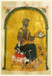 According to the notes on folios 336v and 337v, this manuscript was written by the monk Romanos in the year 1337, very probably at Chelandari, at the bidding of Hegumen Arsenios, and was decorated a few years later, in 1360, when Dorotheos was hegumen. It is illuminated with the full-page representations of the four Evangelists: John (fol. 3v), Matthew (fol. 51v), Luke (fol. 129v) and Mark (fol. 234v), the work of a competent painter of the mid-fourteenth century. They are depicted seated, each in a different posture beneath an arch and against a plain gold background. The decoration also includes headpieces of various shapes and initials with flora designs. Although the manuscript is Slavonic, the inscriptions in the miniatures and the texts (which appear to be of later date) in the open books of the Evangelists are in Greek. The script in the text is in black ink, while red ink is used for the titles and the rubrics in the margins. The codex contains the Gospel lections for the year and the eleven Gospel lections for Lauds. Its present binding dates from the sixteenth century and consists of wood covered with plain brown leather. The codex, which is known as the Evangelion of the monk Romanos, after the name of the scribe, is in good condition.