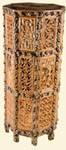 These bema doors were in the kalyve of St Haralambos, which belongs to the New Skete. After the recent death of the last resident, they were transferred to the sovereign Monastery of St Paul. No-one knows which church they originally came from. The decoration is mixed - painted and carved - and the doors consist of two solid pieces terminating at the top in imperfect quadrants edged with intersecting semicircles and zigzag patterns. The central strip between them resembles a spiral colonnette, with rosettes and guilloches in the middle and at the ends. The greater part of each door is taken up by painted representations: in the central sections, St Peter on the left and St Paul on the right; and the Annunciation in the quadrants, with Gabriel on the left and the Virgin on the right. Behind the Virgin and Gabriel are two buildings, with a prophet depicted from the waist up on each one. There is little carved decoration. The main, rectangular section of each door is divided by a rope-like ornament into two parts, a narrow one below, decorated with relief heart-shaped ornaments, and one above, with zigzag strips along the outer edges and topped by two opposed spiral tendrils enclosing palmettes. The lettering in the representations is in the Slavonic script of Romania. The carved areas are not only limited, they are also somewhat unsophisticated in style. They make an attempt at symmetry and display a mixture of techniques: some parts are almost flat - the heart-shaped ornaments in the lower section, which are reminiscent of earlier works (Papatheophanous-Tsouri 1995, figs. 10-13) - while in others (the palmette tendrils over the figures of Peter and Paul) the relief is low, smooth, and semicircular in section. This latter technique is also seen in the accurately dated (1591) iconostasis in the Church of St Nicholas at Velvendo (Makris 1969, p. 61. Tsaparlis 1980, pp. 26-8), in the almost contemporary iconostases in the Church of the Virgin at Kastraki, Kalambaka prefecture, and the Church of the Virgin at Aiani, Kozani prefecture, and also on a bema door in Kastoria Museum. It reflects trends that were prevalent in Macedonia, Epirus, Thessaloniki (Nikonanos 1995, p. 223), and former Yugoslavia (Corovic-Ljubinkovic 1965, pls. XVII, XVIII, XIX, XX, XXI, etc.).