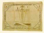 This antimension, which is in very good condition, is made of heavy off-white linen, lined with the same material in blue and decorated in black ink. Although generally austere, the decoration of this antimension combines elements from every period of the iconographic evolution of this liturgical vestment. The centre is dominated by the cross with the instruments of the Passion (lance, reed, sponge and crown of thorns) and the talismanic abbreviations ΙΣ ΧΣ ΝΙ ΚΑ (Jesus Christ Conquers), an archaic element. At the base of the cross there are iconographic motifs from the second period: the 'empty tomb' and the 'stone rolled away from the tomb'. This naive composition is enclosed within a rectangular border, in the corners of which are triangles framing the busts of the four Evangelists, a feature usually encountered in the third period. The Evangelists are holding open scrolls - an unusual detail - on which are written the first phrase of each one's Gospel. The spaces between the triangles form narrow bands decorated with the calligraphic inscription of consecration: (above) '+ Άγιον κ(αί) ιερόν Θυσιαστήριον, του εν Aυτώ τελείσθαι τάς θείας κ(αί) ιεράς τελετάς' (Divine and sacred altar, for use in divine and sacred rites) (left-right) '+ Καθιερώθι παρά του θεοφιλεστάτου αγίου Κορών(ης) Κυρίου, κου, ΜΑΚΑΡΙΟΥ' (Dedicated by the favoured of the Lord, Makarios, Bishop of Koroni) (below) 'αψξγ' εν Iαννουαρίω ινδικτ(ιώνος) ια'' (1763 in the month of January indiction 11). An inscription in similar lettering on the lower border reads 'Xρυσοκελλαρί(ου)' (of Chryssokellariou): this was probably a monastery, perhaps within the Episcopate of Koroni, to which this antimension was donated, or where it was consecrated, by Bishop Makarios in 1763(?). Makarios Karakallos of Demetsana was apparently Bishop of Koroni, in Messenia, from about 1744 to 1770. The original and simplistic synthesis of iconographic elements from various periods, tending towards imitation of the archaic, makes this an interesting antimension for its period which was generally one of rich and elaborate decoration due to the possibilities offered by the new technique of copperplate printing and to the liturgical and aesthetic demands.