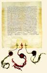 Suspended from the bottom of the document on multicoloured cords are three Wallachian seals.